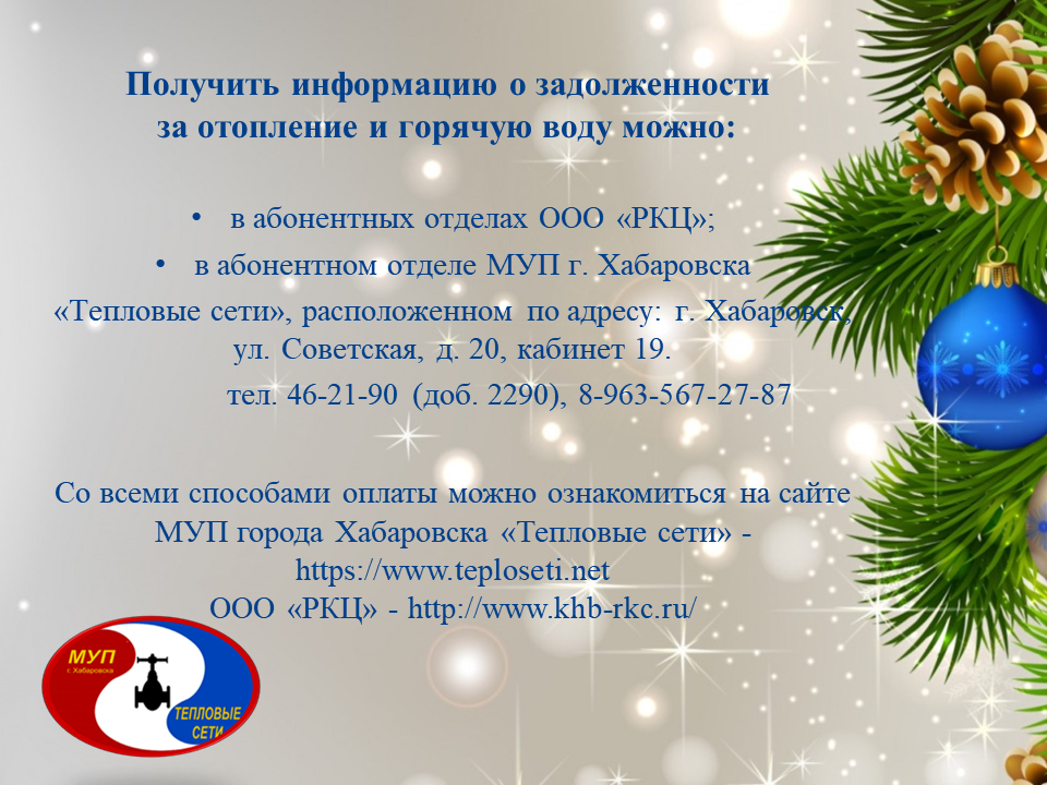 С уважением, Администрация МУП г. Хабаровска «Тепловые сети».